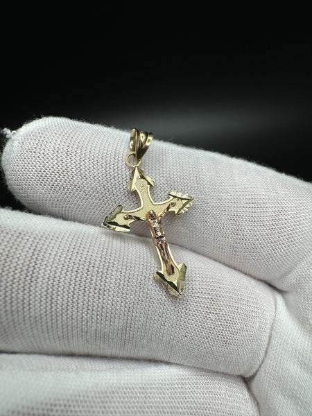 1.25” 14k Yellow Gold Pointed Cross with Rose Gold Crucifix 4mm Bail 1.34g