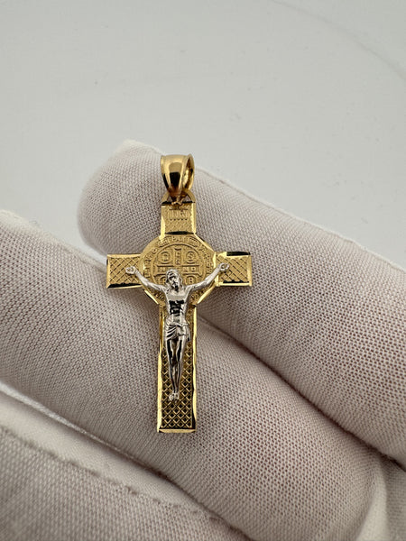 1.5” 14k Yellow Gold High Detail Cross & Crucifix 5mm Bail 2.7g