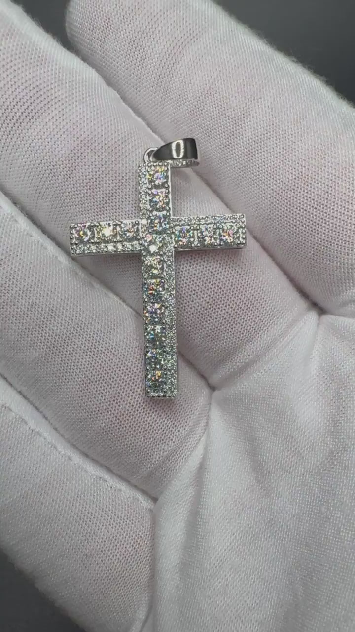 1.5" 2.5ctw Moissanite Silver Cross 5mm Bail 3.3g