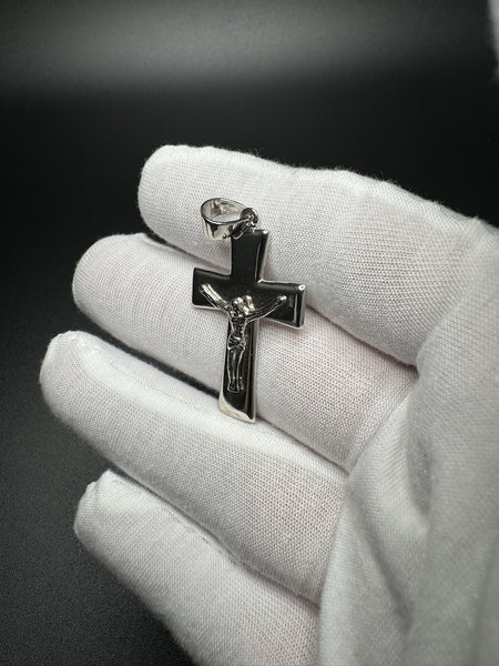 1.75” Silver Square Cross Crucifix 5.7mm Bail 5.0g