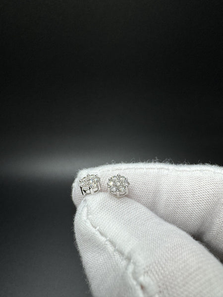 10k White Gold 1/2ct Natural Diamond Cluster Studs 1.2g
