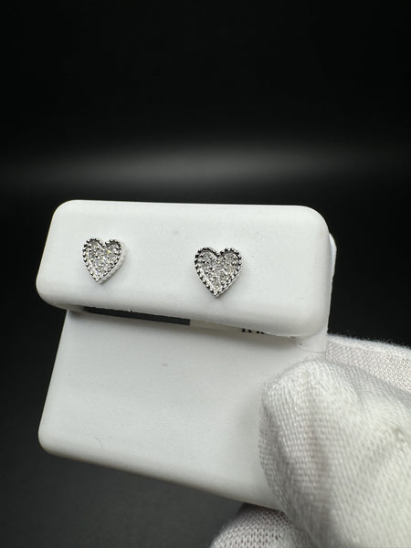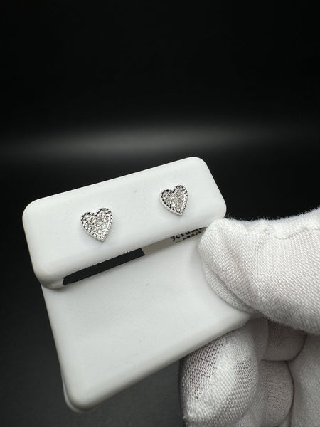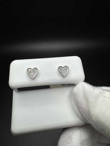 10k White Gold Heart Shape 1/10ctw Natural Diamond Cluster Studs 1.0g