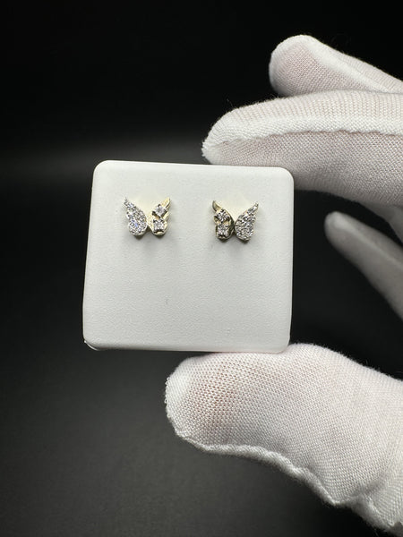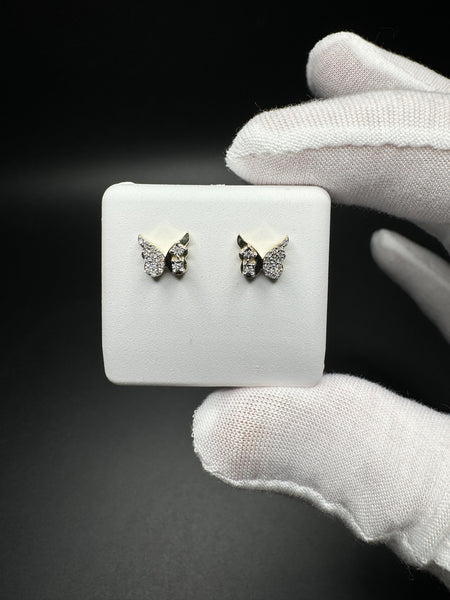 10mm 10k Yellow Gold 1/10ctw Natural Diamond Butterfly Earrings 1.4g