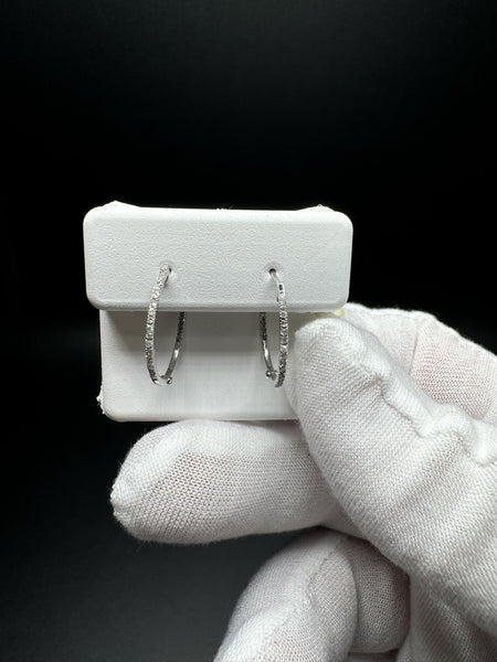 17mm 10k White Gold 1/5ctw Natural Diamond Inside Out Hoops 1.0g