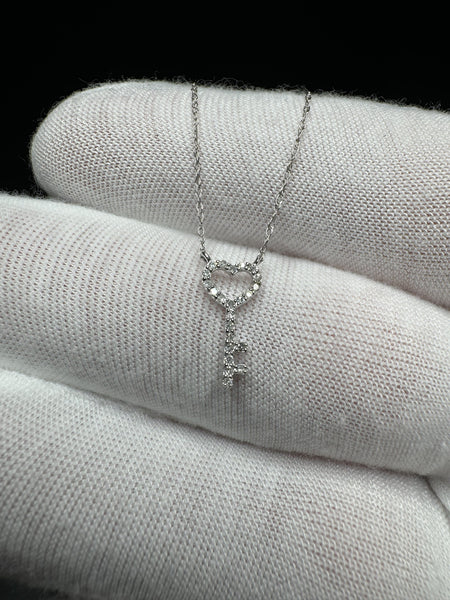 18” 10k White Gold 1/10ctw Natural Diamond Key Pendant Chain .8g
