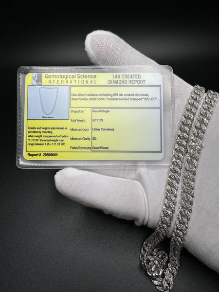 18” Silver 5ctw Lab Diamond GSI Certified Cuban Link 7mm 44.2g
