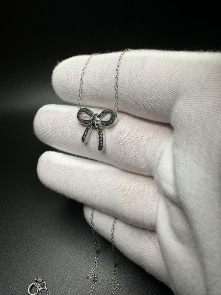 18” Silver Chain & 1/4ctw Natural Blue Diamond Bow Pendant 2.8g