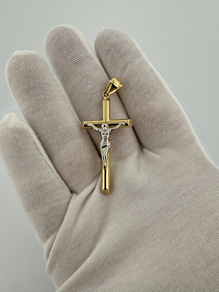 2” 14k Yellow Gold Cross & White Gold Crucifix 6mm Bail 2.56g