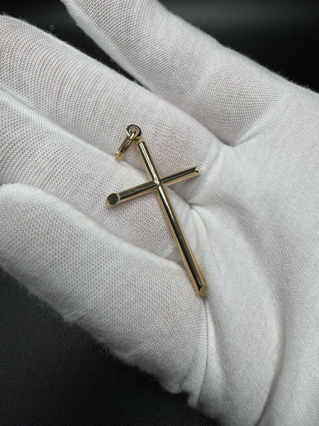 2” 14k Yellow Gold Thin Round Cross 2.7mm Bail 2.6g