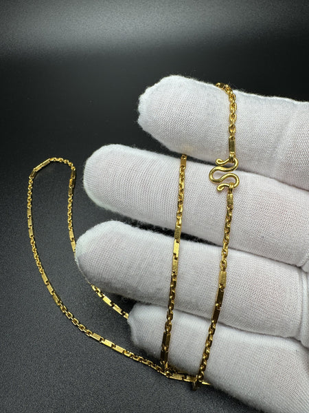 20” 24k Yellow Gold Bar & Anchor Baht Chain 2mm 14.72g