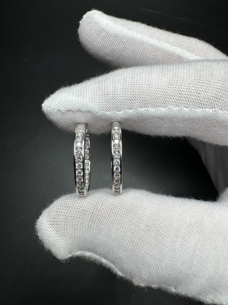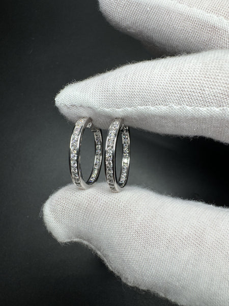 20mm 14k White Gold 1ctw VS/VVS Lab Diamond Channel Set Inside Out Hoops 5.1g