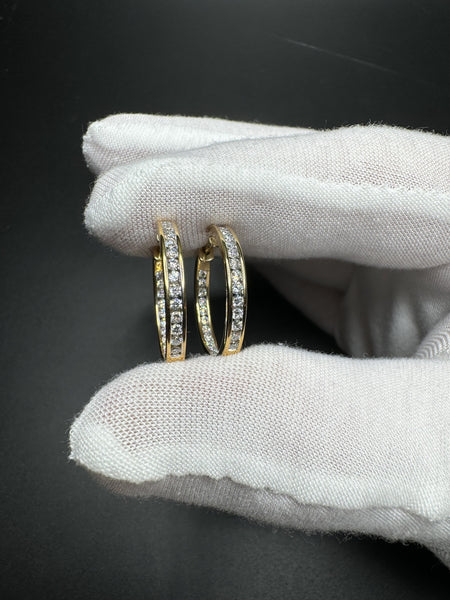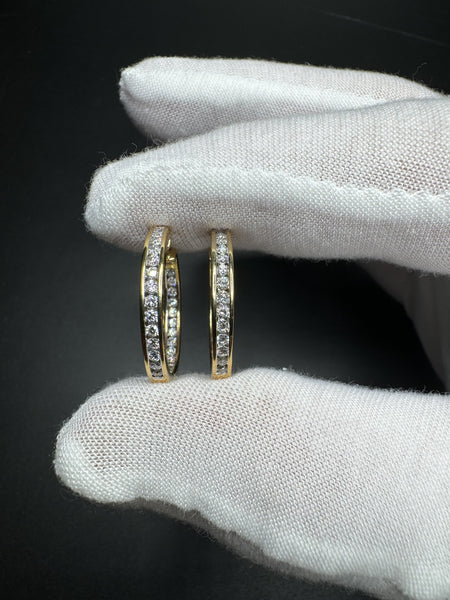 20mm Gold over Silver 1ctw VS/VVS Lab Diamond Channel Set Inside Out Hoops 2.7g