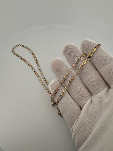 22” 14k Tricolor Figaro 3.5mm 8.06g