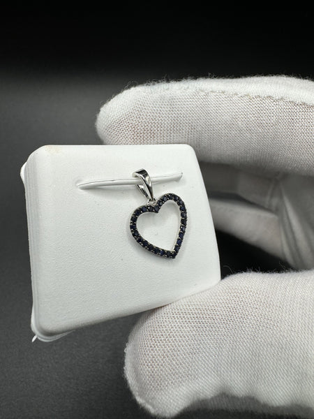 3/4” 14k White Gold Heart Pendant Covered in Natural Black Diamonds 3mm Bail .7g