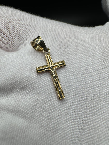 3/4” 14k Yellow Gold Square Crucifix 3.5mm Bail .8g