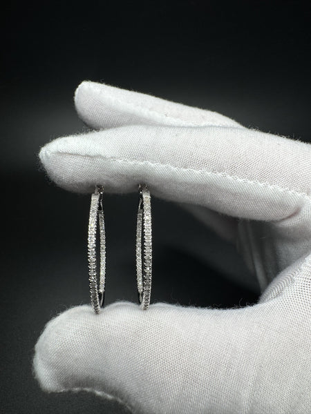 30mm Silver .5ctw Natural Diamond Inside Out Hoops 5.0g