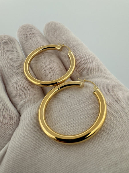 35mm x 4mm 18k Yellow Gold Hoops 4.2g