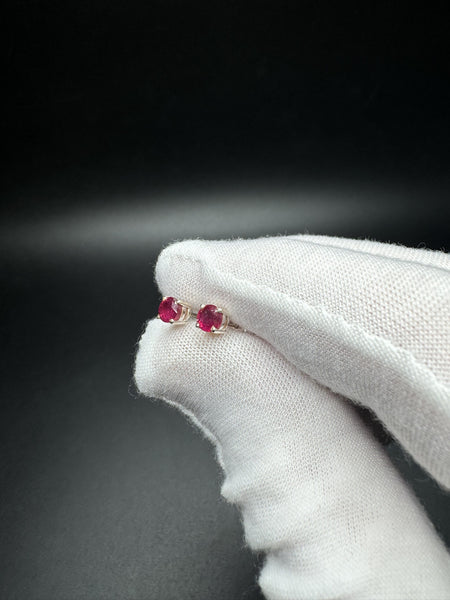 4mm Silver Natural Ruby Stud Earrings