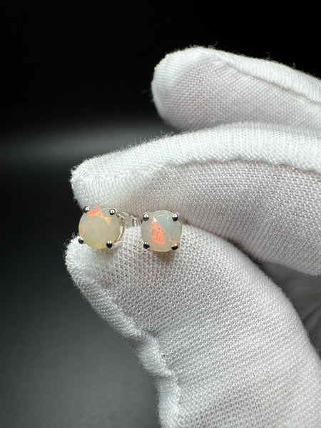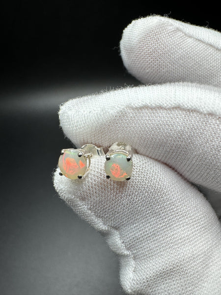 Beautiful 5mm natural opal studs set in sterling silver. Opals display a stunning play of color that shifts with the light — no two pairs are exactly alike. A unique and affordable addition to any jewelry collection.