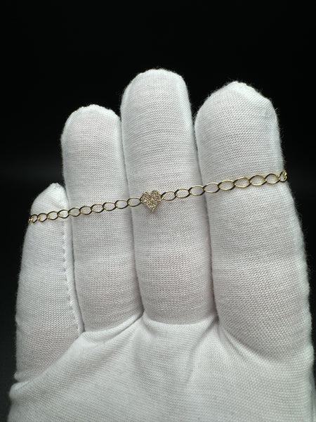 6.5-7” 10k Yellow Curb Bracelet 3mm with Natural Diamond Heart Charm 1.44g