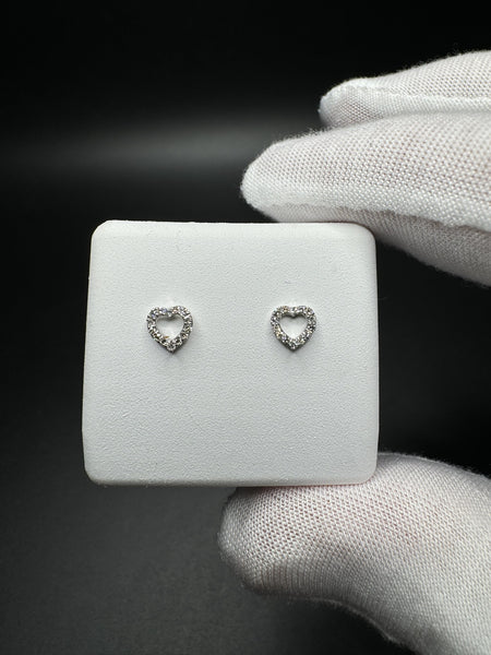 6mm 10k Yellow Gold Heart Shaped Outline Studs 1/8ctw Natural Diamonds .6g