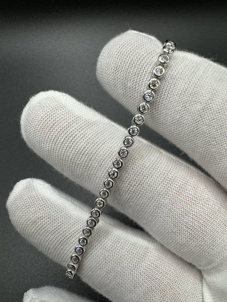 7” 2.5ctw Bezel Set Moissanite Silver Tennis Chain 3mm 7.6g