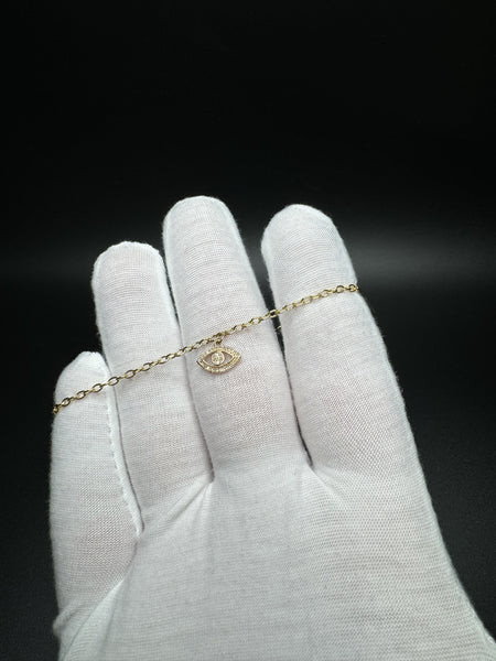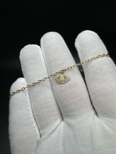7.5” 10k Yellow Gold Evil Eye Charm Bracelet with Natural Diamonds 1.3g