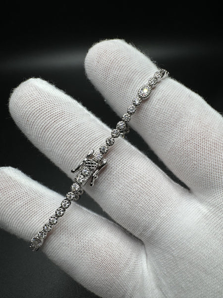 7.5” Moissanite Silver Fancy Link Tennis Bracelet 3.5mm 8.8g