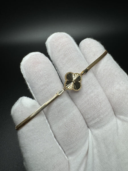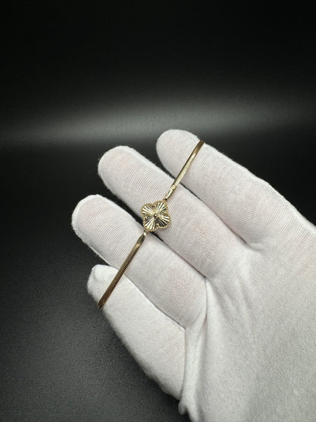 7”-7.5” 14k Yellow Gold One Motif/Clover Snake Bracelet 14mm 4.11g