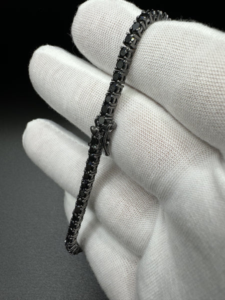 8” 3mm Silver Black Rhodium & Black Spinel Tennis Bracelet 12.0g