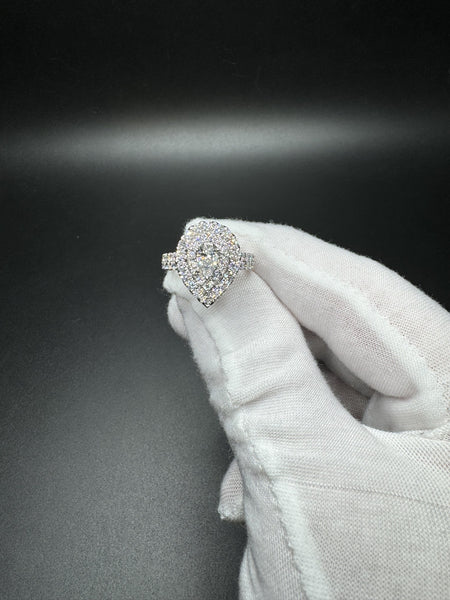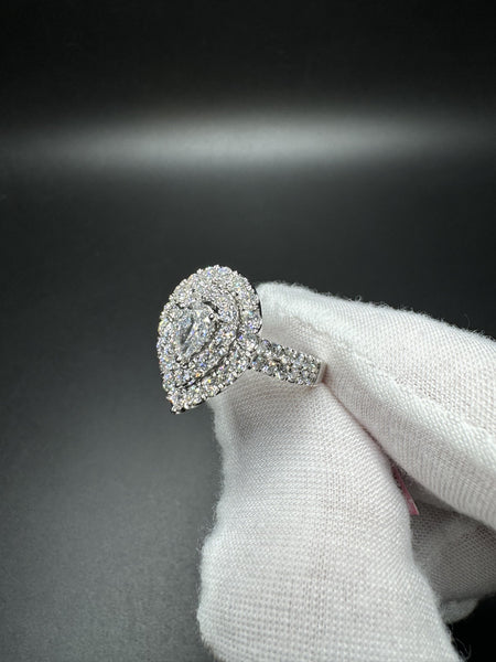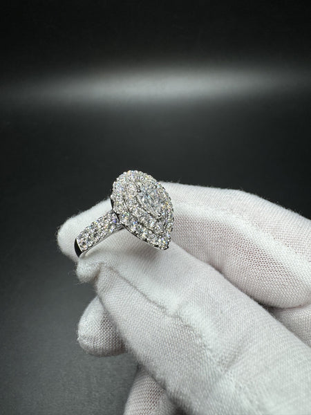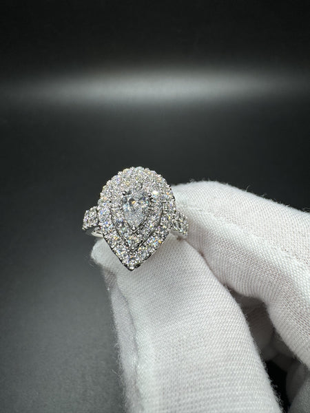 Size 7 10k White Gold 2.1ctw E-F VS1 Pear Shape Center Lab Diamond Ring 5.3g