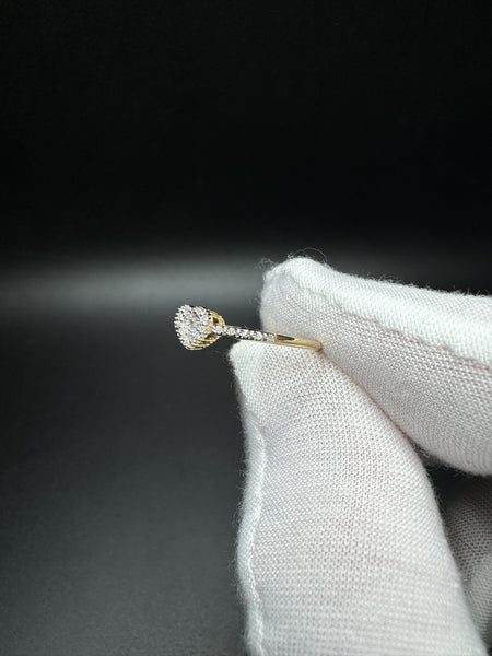 Size 7 10k Yellow Gold Iced Out Natural Diamond Heart Ring 1.0g