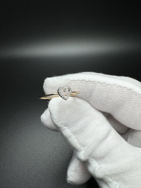 Size 7 10k Yellow Gold Natural Diamond Heart Outline Ring .9g