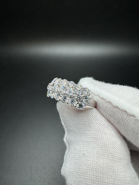 Size 7 14k White Gold 2.75ctw E-F VS1 Lab Diamond 3 Row Ring 4.4g