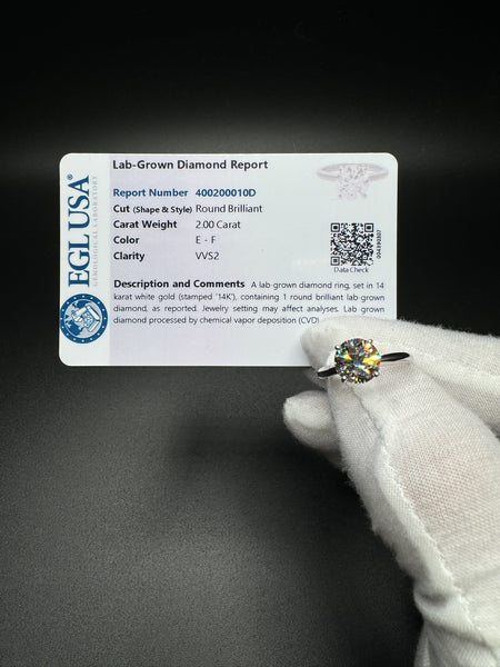 Size 7 14k White Gold 2ct E VVS2 Solitaire Engagement Ring EGL Certified 2.5g