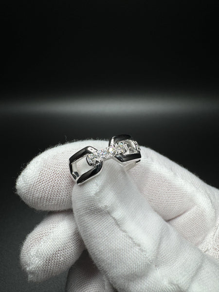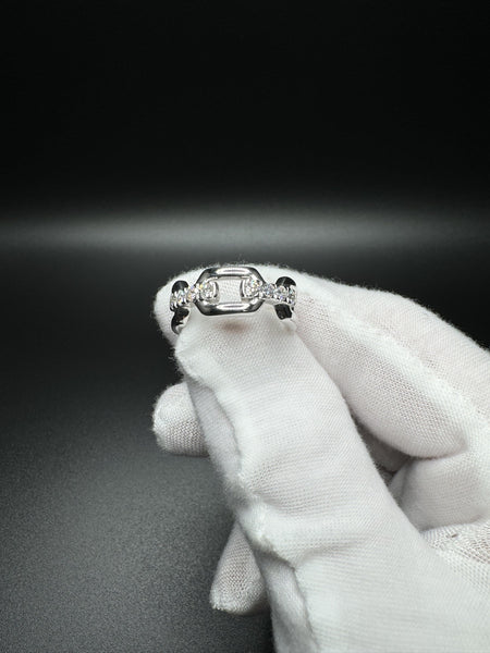 Size 8 Silver 1/2ctw Lab Diamond Link Style Ring 5.4g